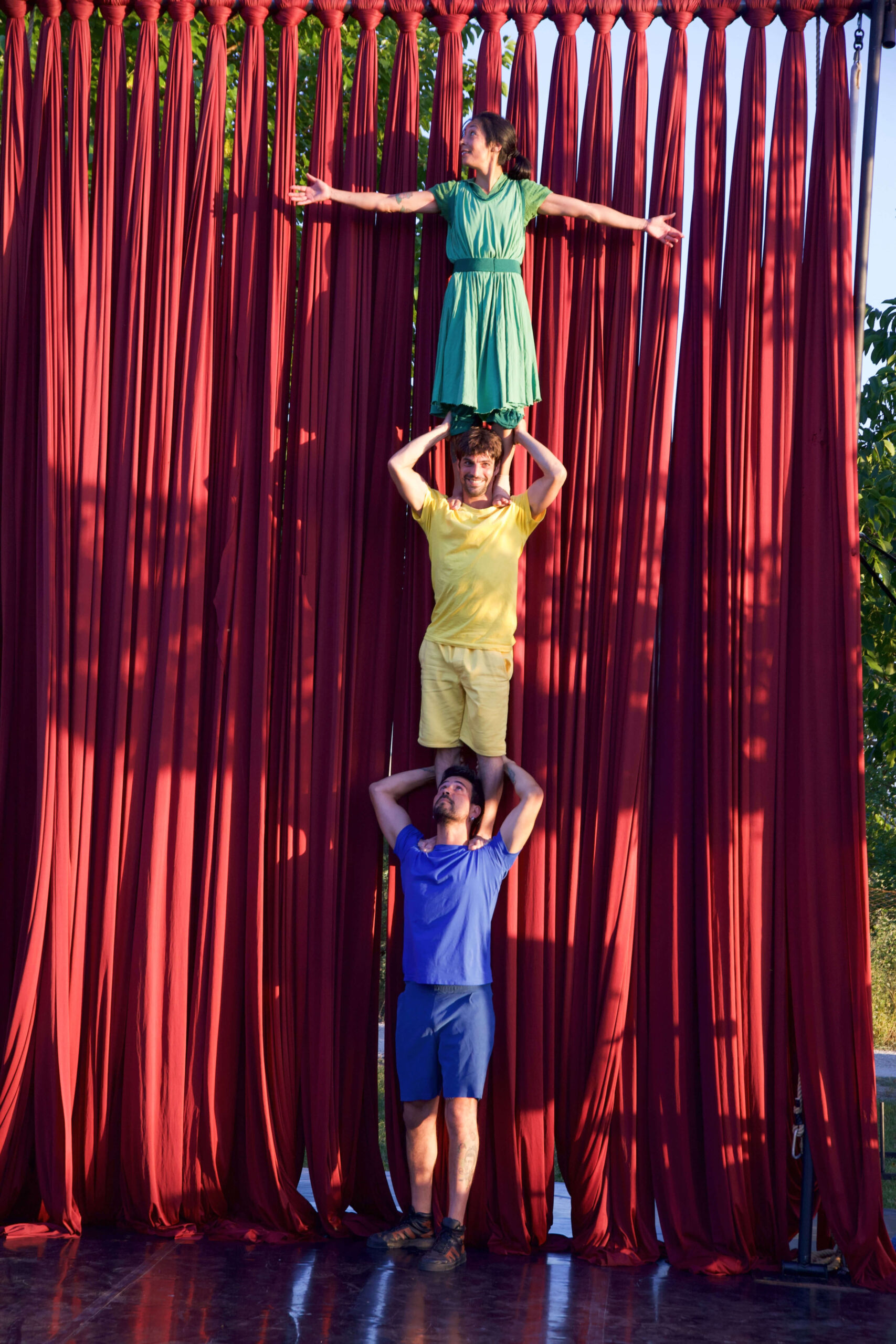 Una ricerca sui colori essenziali dell’animo umano in un’epoca fredda e commerciale, un viaggio verticale che rappresenta il ritorno alla purezza dell’infanzia. In questo progetto si sperimenta un linguaggio flessibile, comico, che accende lo stupore e mette in scena il circo con i virtuosismi dell’acrobata aerea Fabiana Ruiz Diaz, dell’equilibrista Pietro Barilli e del giocoliere Felipe Flores. Tre personaggi, accompagnati dalle note del musicista Fabio Guandalini, alla ricerca di ciò che l’uomo ha perduto da tempo: la felicità improvvisa del momento presente. Lo spettacolo, in rapporto diretto con il teatro, dà vita a una narrazione sul conflitto fra tenebre e luce che drammatizza, attraverso composizioni e coreografie a tre corpi, l’assenza stessa del colore nel mondo di oggi.